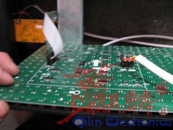 连接电源后,把板小心的对正,然后插上输入的排线和输出的排线,扣好。